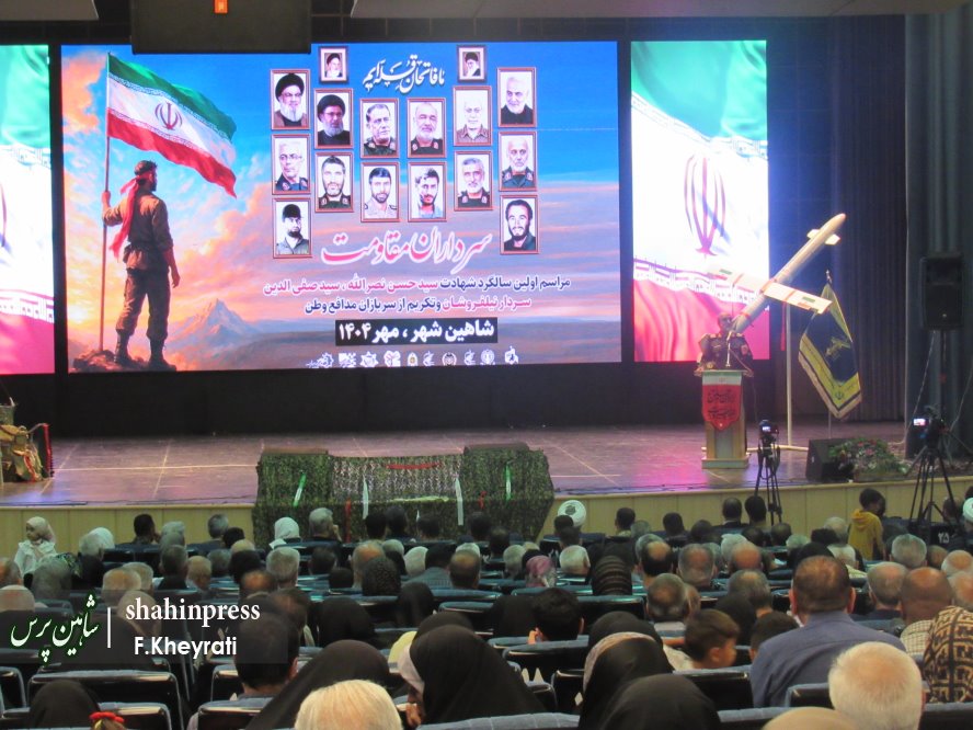 مراسم اولین سالگرد شهادت سرداران مقاومت، شهیدان سید حسن نصرالله، سید صفیالدین و سردار عباس نیلفروشان، همراه با تجلیل از سربازان و با حضور گسترده اقشار انقلابی مردم شاهینشهر در تالار شیخبهایی برگزار شد.